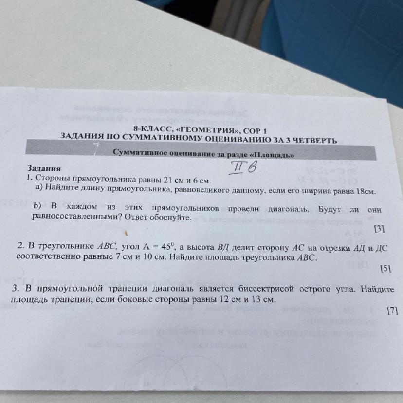 3) Найдите длину прямоугольника, равновеликого данному, если его ширина равна 18см.