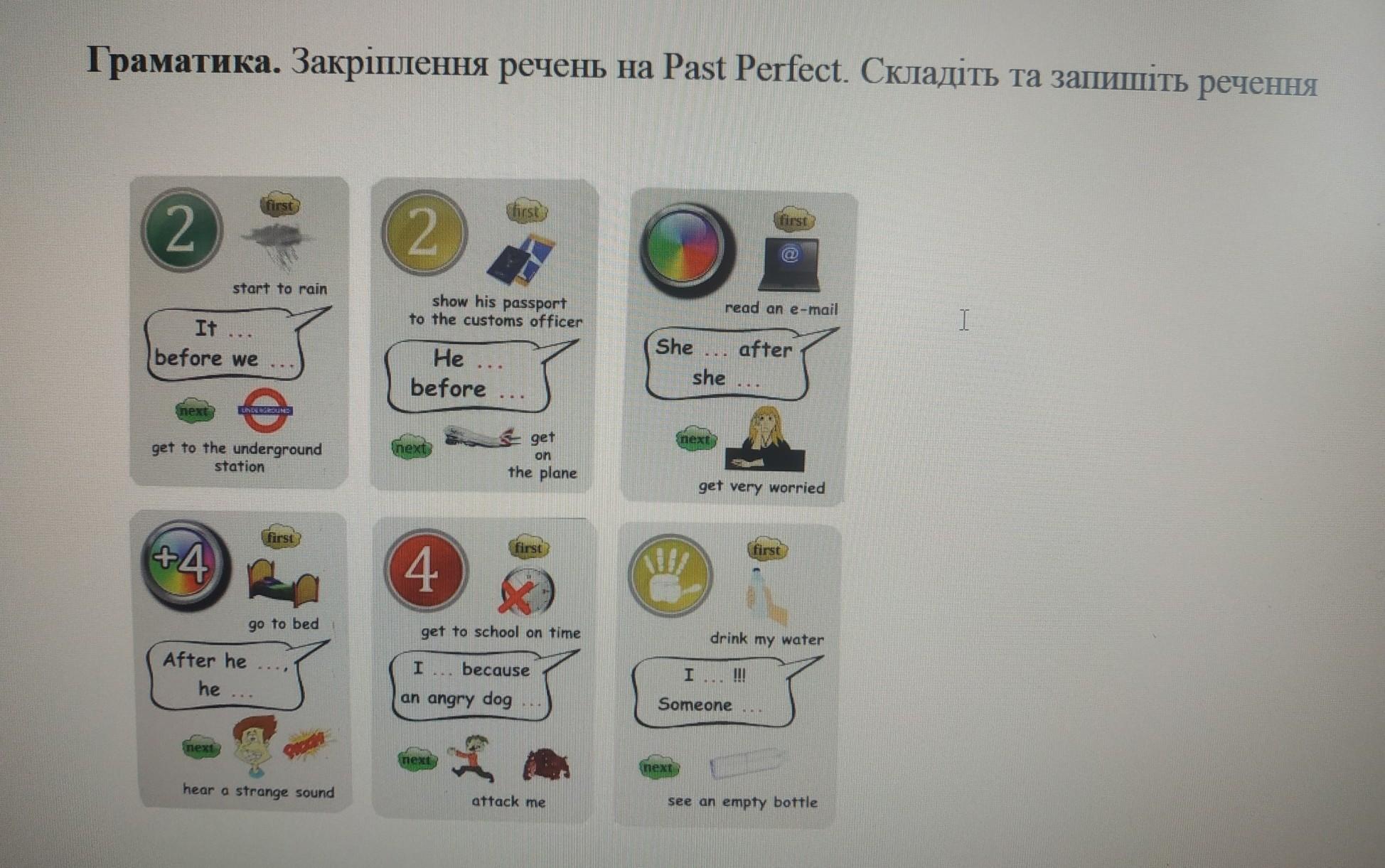 Граматика. Закріплення речень на Past Perfect. Складіть та запишіть речення