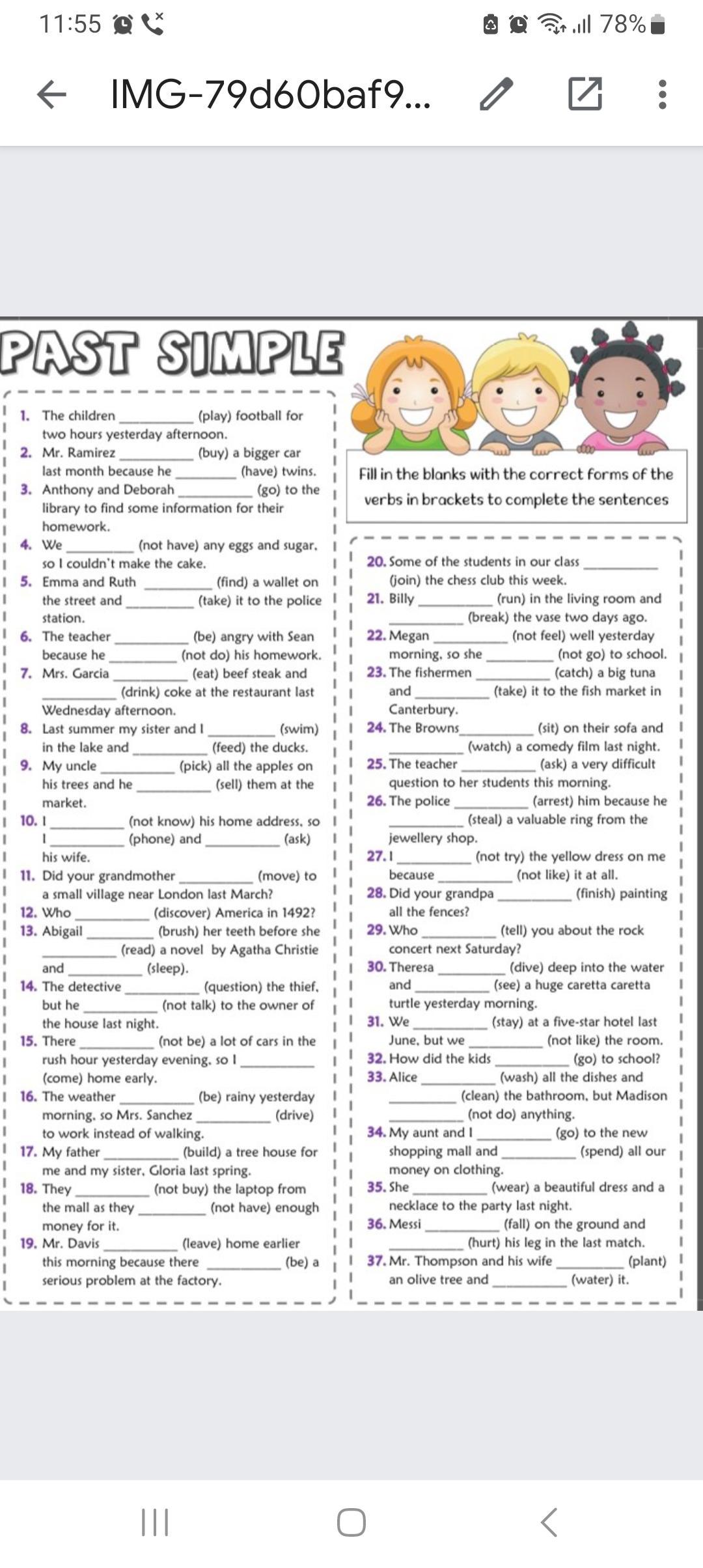 1 played 2bought, had 3.went4.didnt have 5 fought,took 6 was, didn't do 7ate drank 8 swam