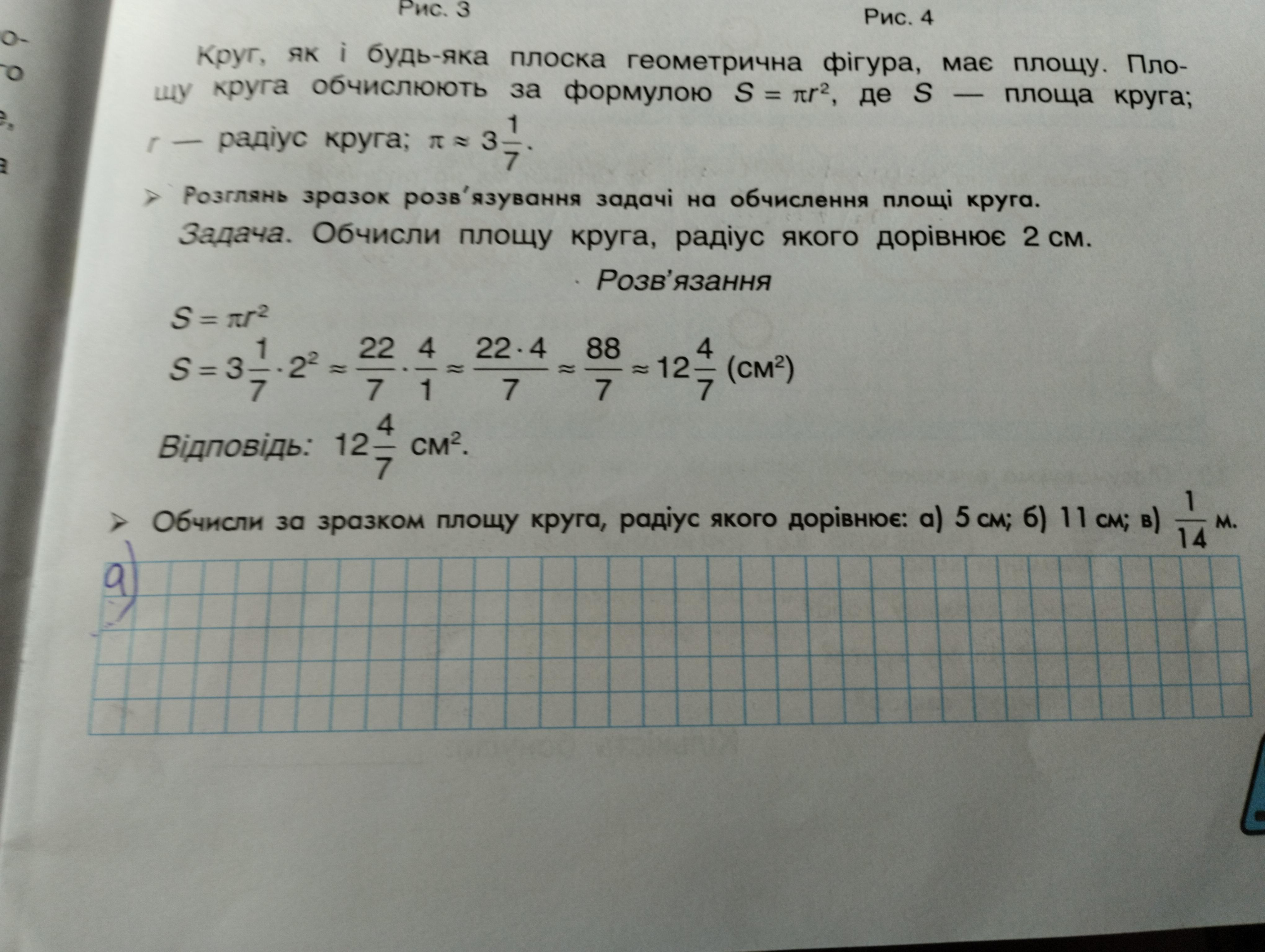 а) радіус дорівнює 5 см, тоді, підставляємо під формулу: