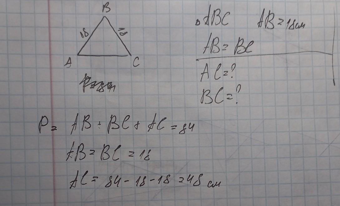 відповадь: АВ=18см, ВС=18см, АС=48см