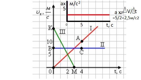 аₓ=ΔV/Δt=10/4=2,5 м/с²