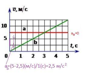 2) аa=0; ab= ΔV/Δt; ΔV=2,5 м/c; Δt=1 c; ab=2,5/1=2,5 м/c²;