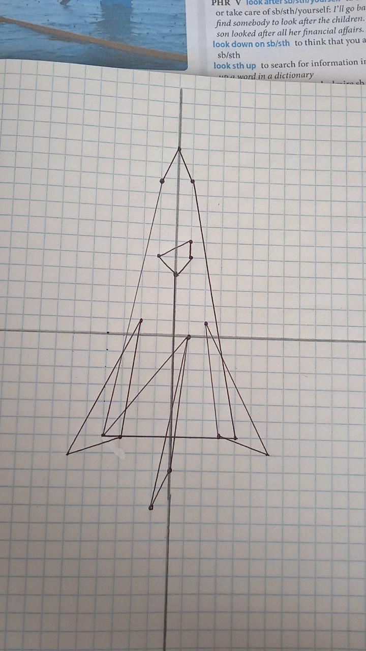 Нарисуйте «Ракета» (1; 5), (0; 6), (-1; 5), (0; 4), (1; 5); (0; -8), (-1; -10), (0; 1), (0; -8); (-4; -6), (-1; 10), (0; 12), (1; 10), (4; -6), (-4; -6); (-3; -6), (-6; -7), (-2; 1), (-3; -6); (2; 1), (3; -6), (6; -7), (2; 1).
