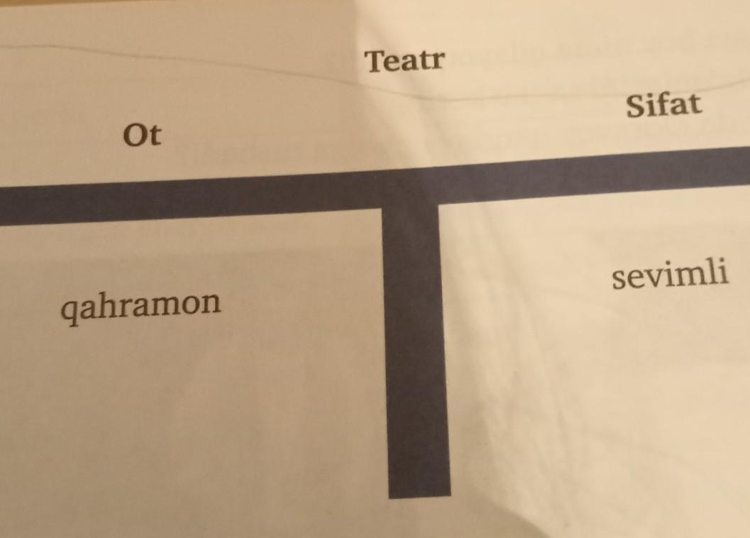 Foydalanish uchun so'zlar: yosh tomoshabinlar, hashamatli va shiman bino, sevimli qahramon. Помогите, я просто узбекский не понимаю