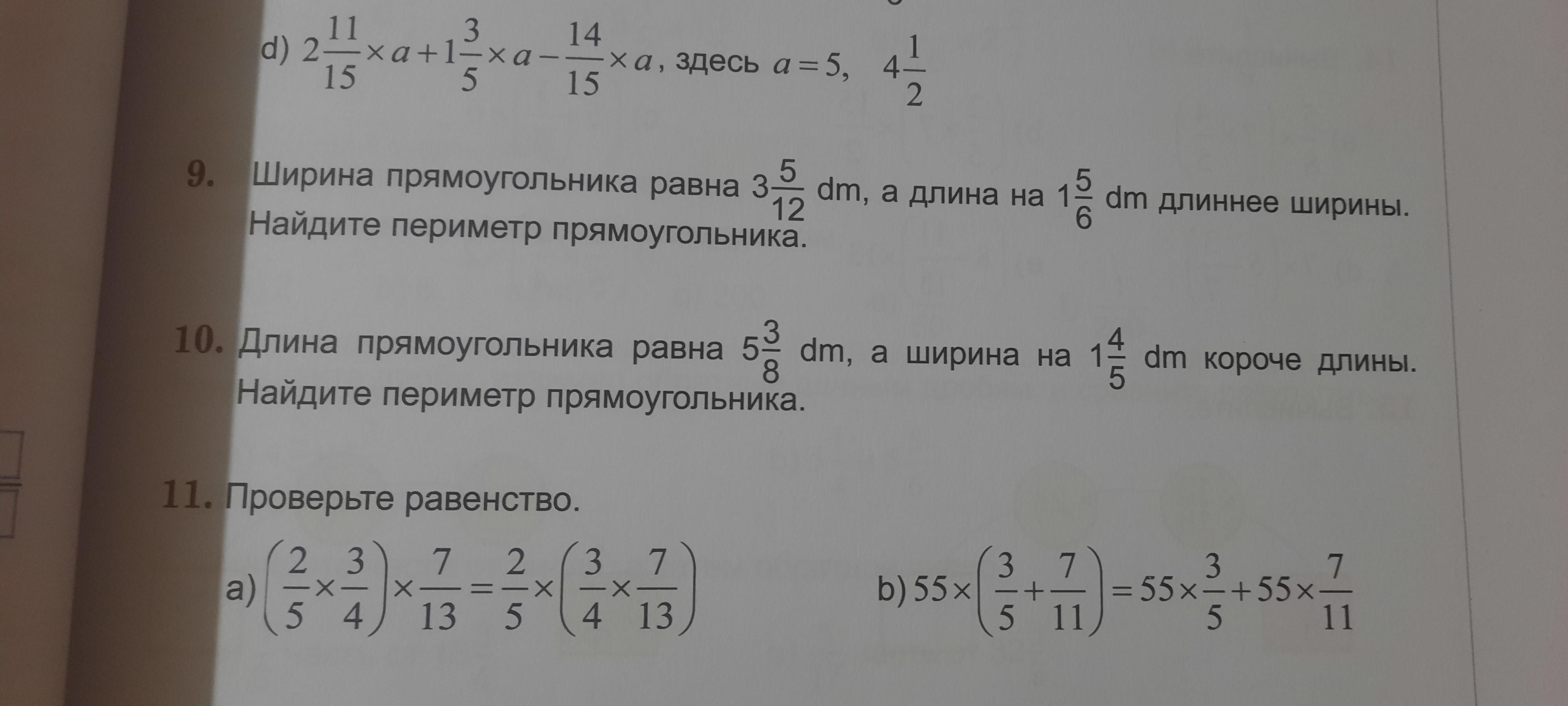 1) 3 5/12 + 1 5/6 = 5 3/12 - (дм) - длина прямоугольника