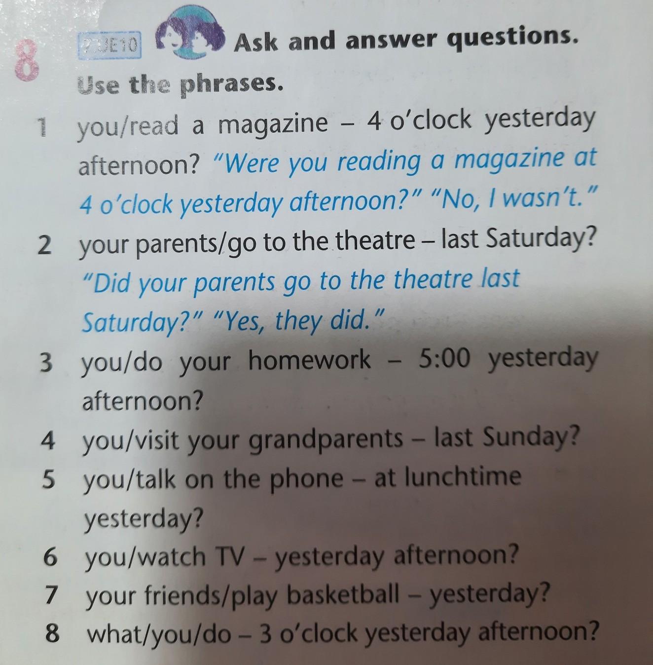 Did you do your homework at 5:00 yesterday afternoon?