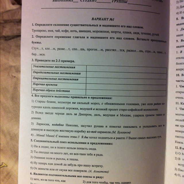 имя дядя авиация пламя-1склон тропарево коффе мороженое терпение-2скл чай ночь-3скл стучат 2спр клеем 1спр развеет1спр споёшь 1спр прогоним2спр растелется 1спр расколишь2спр строим2спр боремся 1спр Указат местоимения-тот этот такой столько Определит-сам самый весь всякий каждый иной другой любой Отрицательные-ночто никакой ничей нисколько Наречие времени-вчера завтра Наречие образа дейсвия-живёте(как?)дружно весело