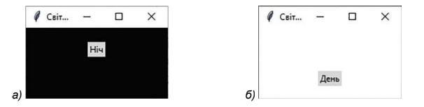 Створіть проєкт, у якому розташуйте у вікні два написи Ніч і День. Задайте заголовок вікна – Світло.