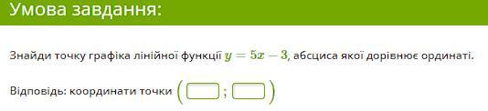 Для того, чтобы найти точку на графике функции y = 5x - 3, где абсцисса равна ординате, необходимо решить уравнение: