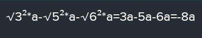 это не правильно должно быть так √9а+√25а-√49а=√3²а+√5²а-√7²а=так как квадраты сокращаются будет 3а+5а-7а=1а