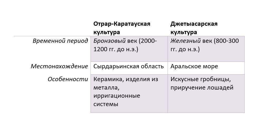 Вот простая таблица, иллюстрирующая разницу между культурами Отрар-Каратау и Джетыасар:
