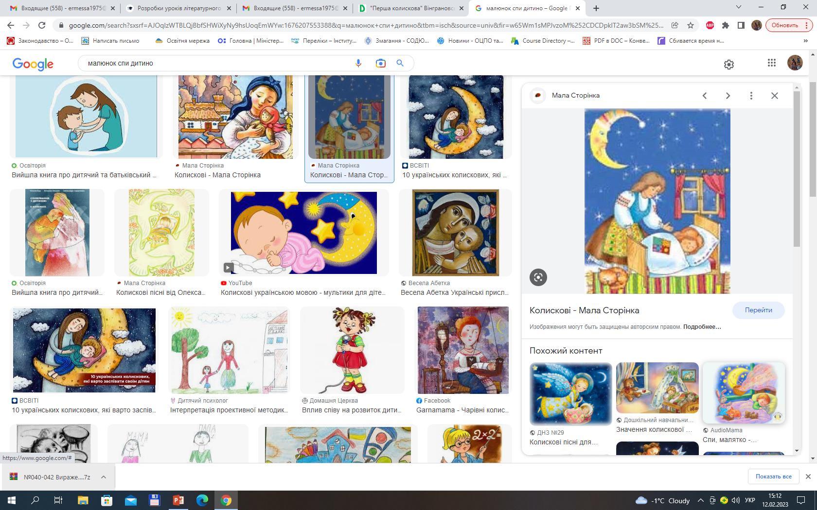 3. Визначити, до якого твору цей малюнок? (25 б.) А) «Чарівники»; Б) «Дощ»; В) «За сонцем хмаронька пливе»; Г) «Перша колискова»; Д) «Садок вишневий коло хати».
