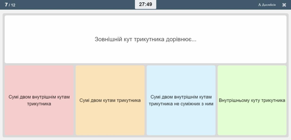 Зовнішній кут трикутника дорівнює сумі двох внутрішніх кутів трикутника не суміжних з ним.