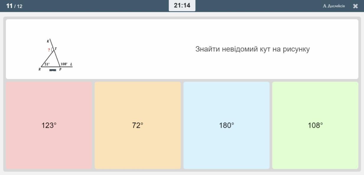 ∠RPT=180°-∠TPL=180°-108°=72° суміжні кути.