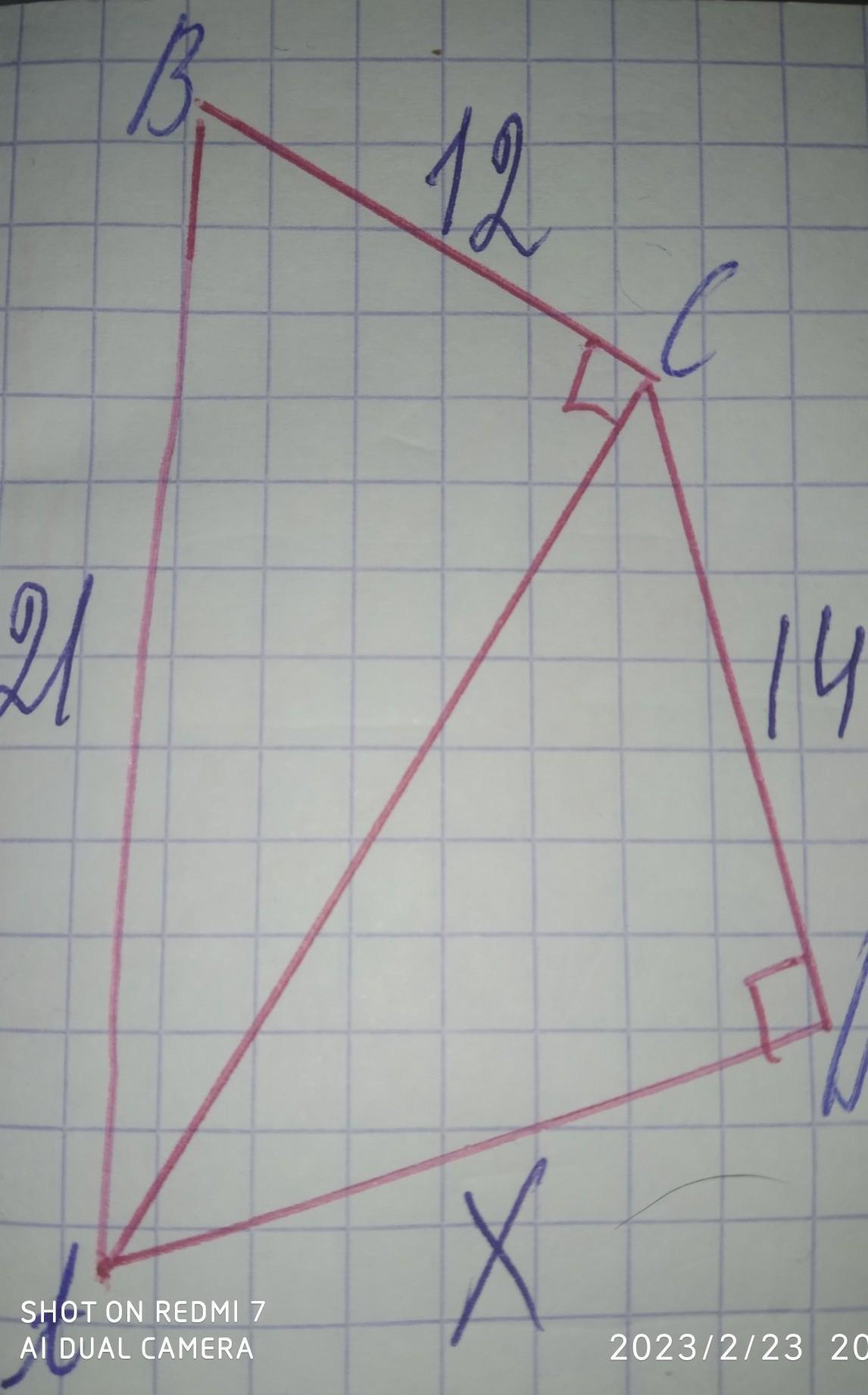 АС²=АВ²-ВС²=21²-12²=441-144=297