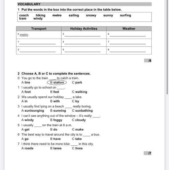 coach; hiking; metro; sailing; snowy; sunny; surfing; tram; windy.