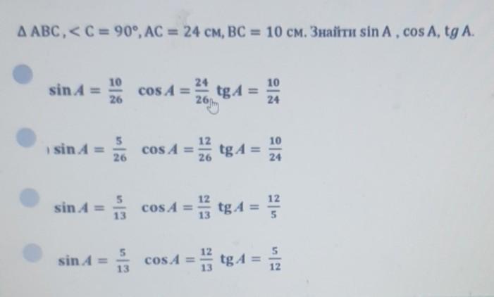 ∠C = 90°; AC = 24 см; BC = 10 см;