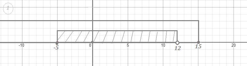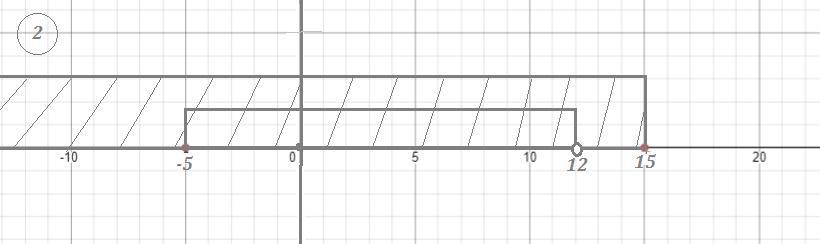 1 ВАРИАНТ Изобразите на координатной прямой и запишите пересечение и объединение числовых промежутков (-5; 12) n (-бесконечность ; 15].