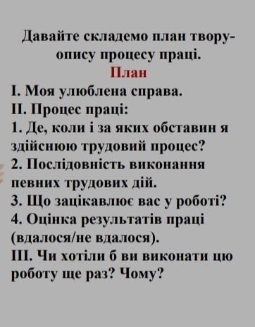 Написати твір розповідного характеру "Моя улюблена справа" в художньому стилі за складеним планом. Обсяг - 1,5-2 сторінки.