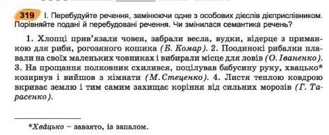 Завдання 1. Перебудуйте речення, замінюючи одне з особових дієслів дієприслівником. Порівняйте подані й перебудовані речення. Чи змінилася семантика речень?