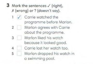 Для того, чтобы решить данную задачу, нужно прослушать аудиозапись. В ней будет рассказываться про этих ребят ( Кэрри и Мэрлона). Без этой записи невозможно узнать правдивы или ложны эти утверждения
