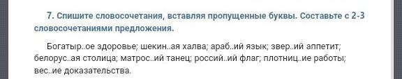 7. Спишите словосочетания, вставляя пропущенные буквы. Составьте с 2-3 словосочетаниями предложения.
