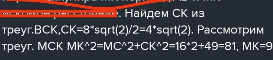 До площини ромба АВСД, у якого кут А дорівнює 45 градусів, АВ = 8 см, проведено перпендикуляр МС довжиною 7 см, Знайдіть відстань від точки М до сторони АД