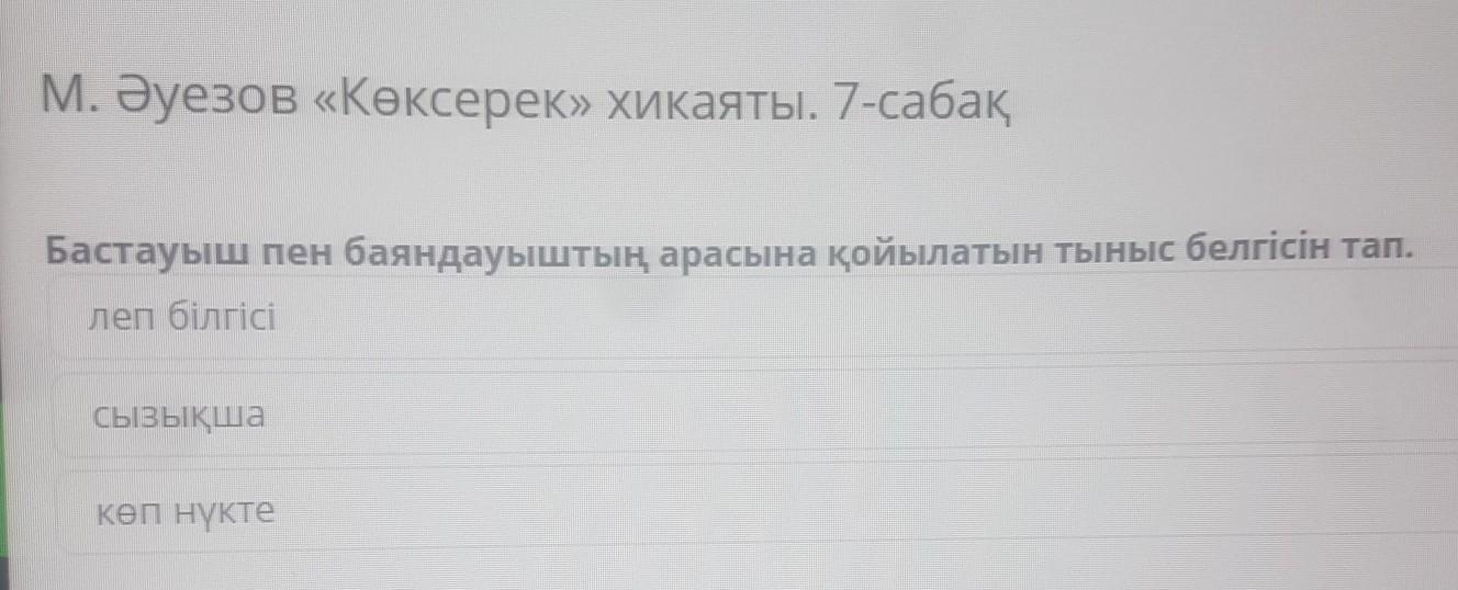 М. Әуезов «Көксерек» хикаяты. 7-сабақ Бастауыш пен баяндауыштың арасына қойылатын тыныс белгісін тап. сызықша көп нүкте леп бiлгiсi