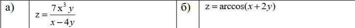 а. Область визначення функції z = (7x^3y)/(x-4y) складається з усіх значень x та y, для яких знаменник x - 4y не дорівнює нулю, тобто x ≠ 4y. Отже, область визначення: D = {(x,y) | x ≠ 4y}.