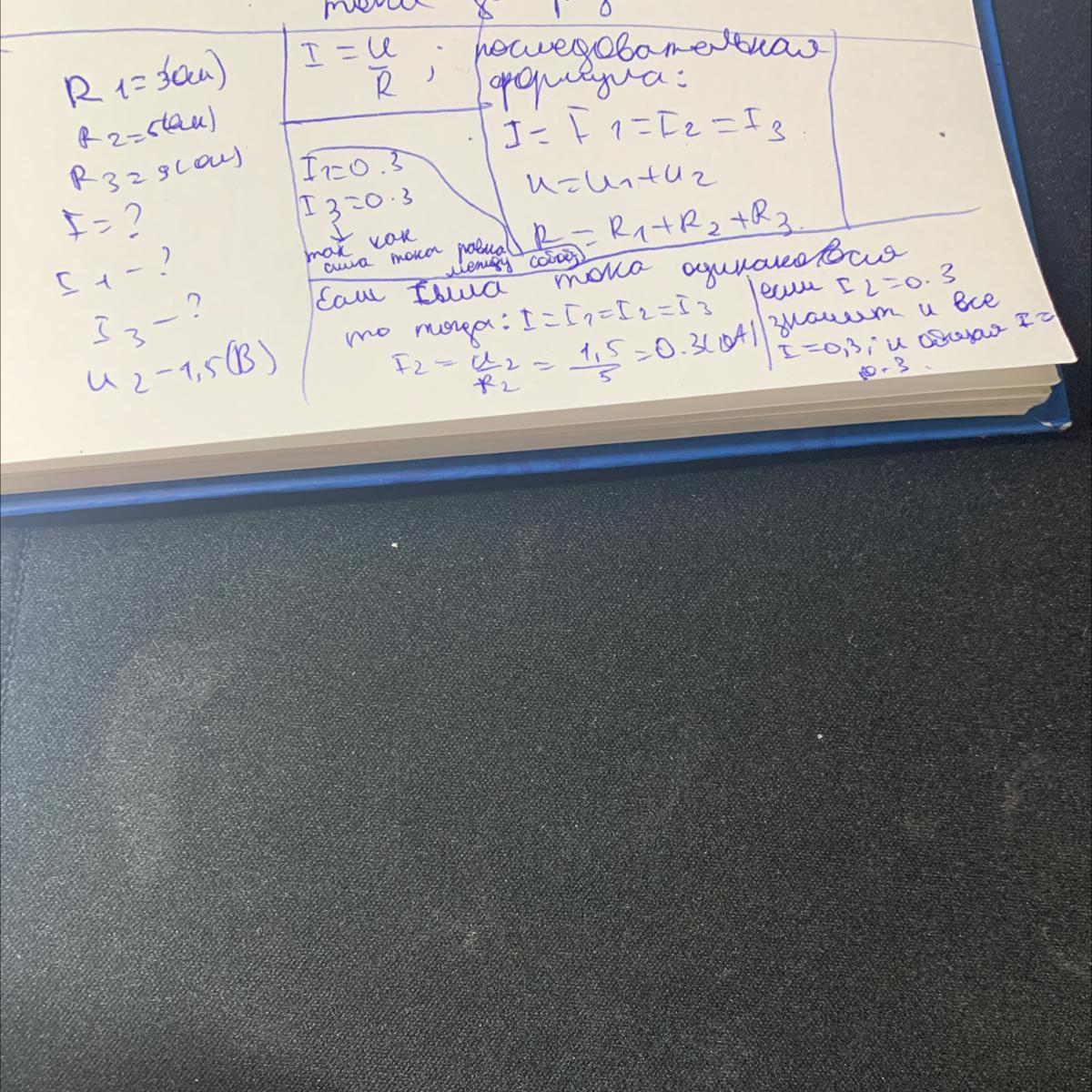 последовательно три проводника сопротивлениями 3 Ом, 5 Ом В цепь включены и 9 Ом соответственно. Какая сила тока в цепи и какое напряжение на первом и на третьем проводниках, если напряжение на втором проводнике 1,5 В?