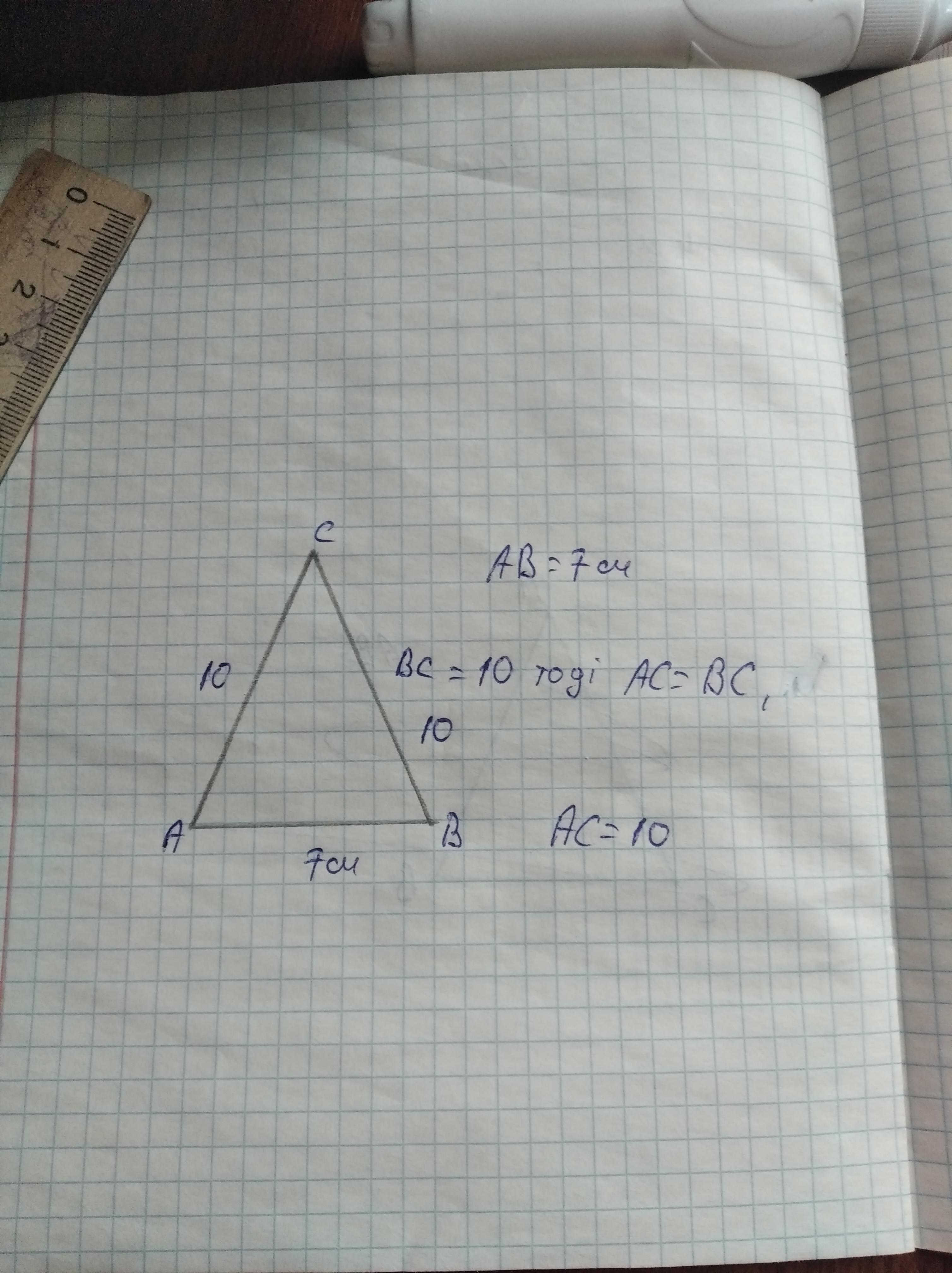 У трикутника ABC AB=7 см,BC=10см.Знайти відрізок АС