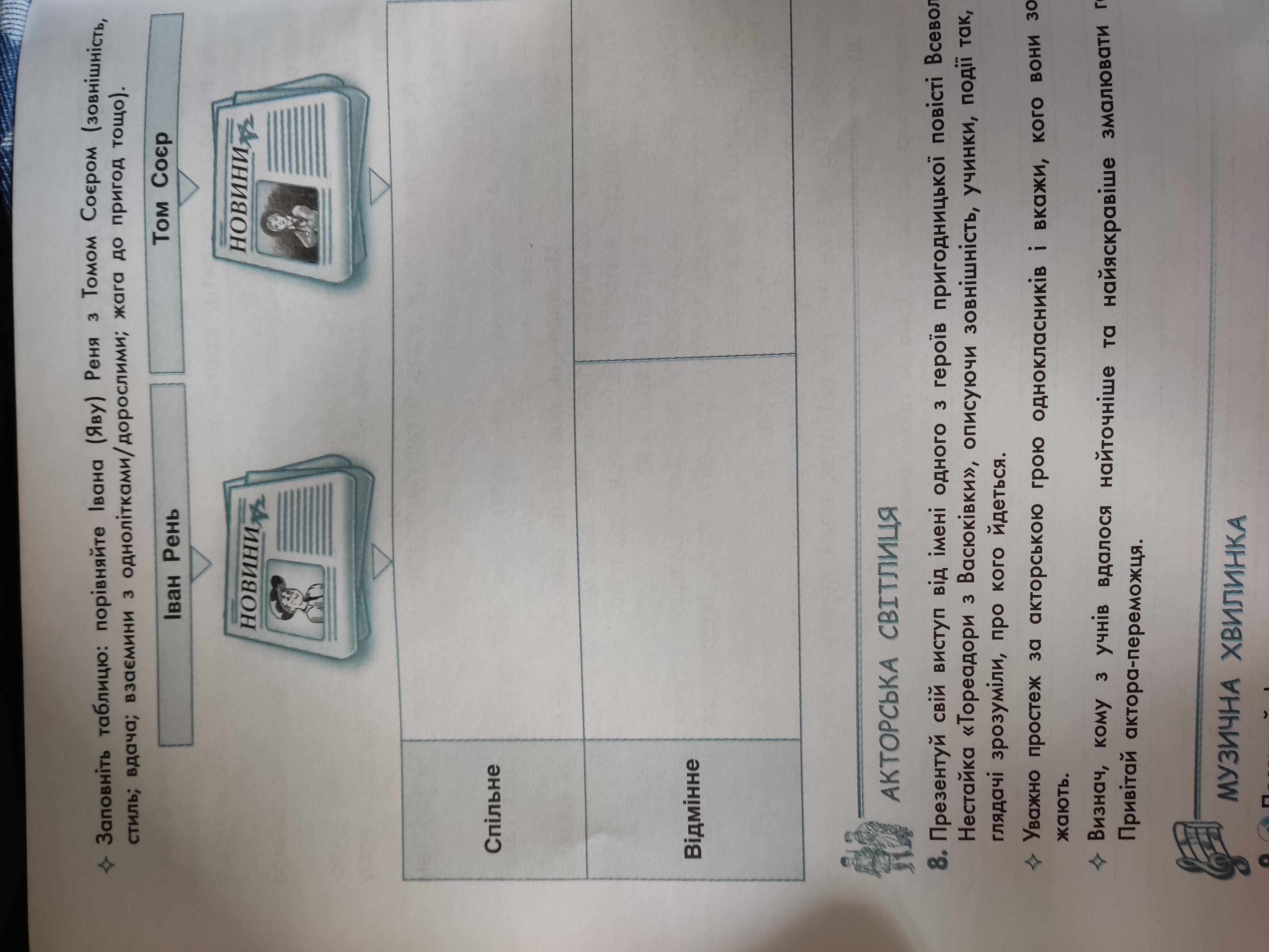 заповніть таблицю: порівняйте івана (Яву) Реня з Томом Соєром (зовнішність, стиль; вдача; взаємини з однолітками/дорослими; жага до пригод тощо). СРОЧНО!!!!