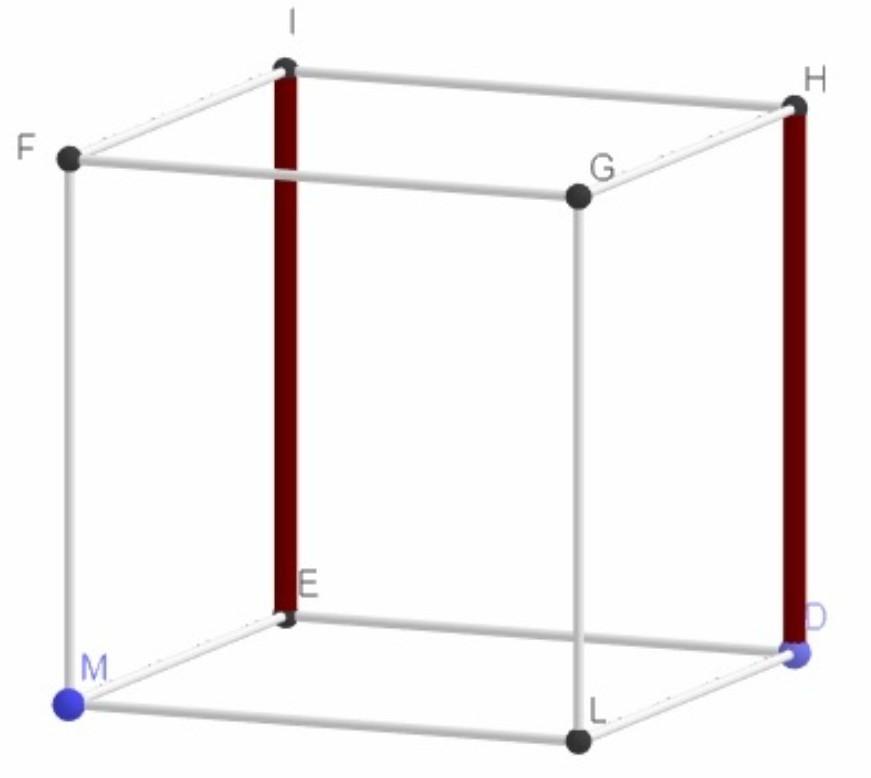 Назвіть відрізок, довжина якого є відстанню між паралельними прямими IE і HD?