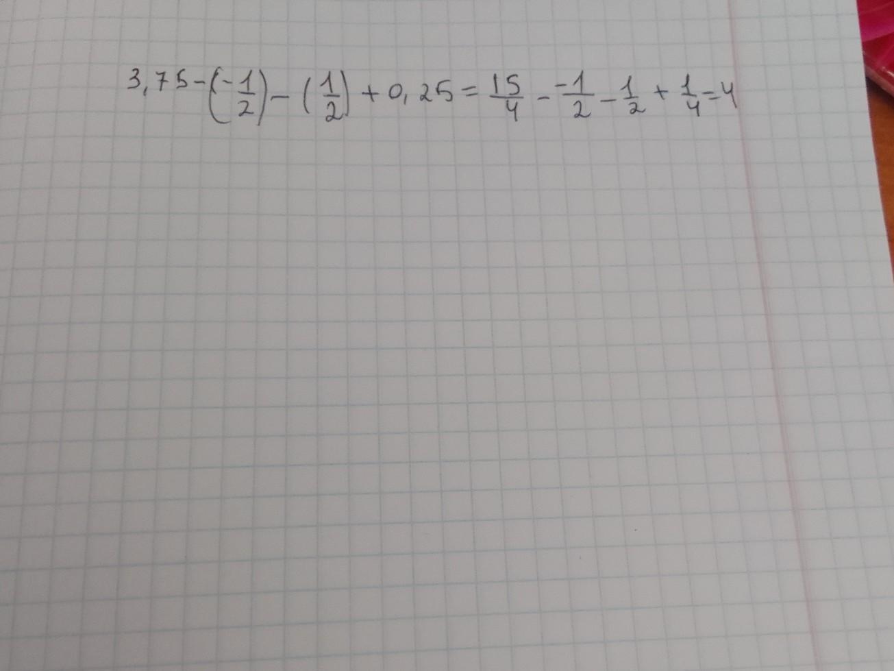 б)3,75-(-1/2)-(1/2)+0,25=