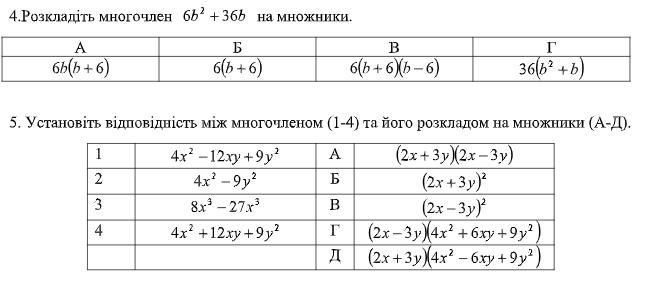 в цьому прикладі ми бачимо що у 6b² i 36b є спільний множник 6b. Виносимо його за дужки, а в дужках пишемо множники які залишились: 6b*b=6b² і 6b*6=36b, отже в першому це b, а в другому це 6.