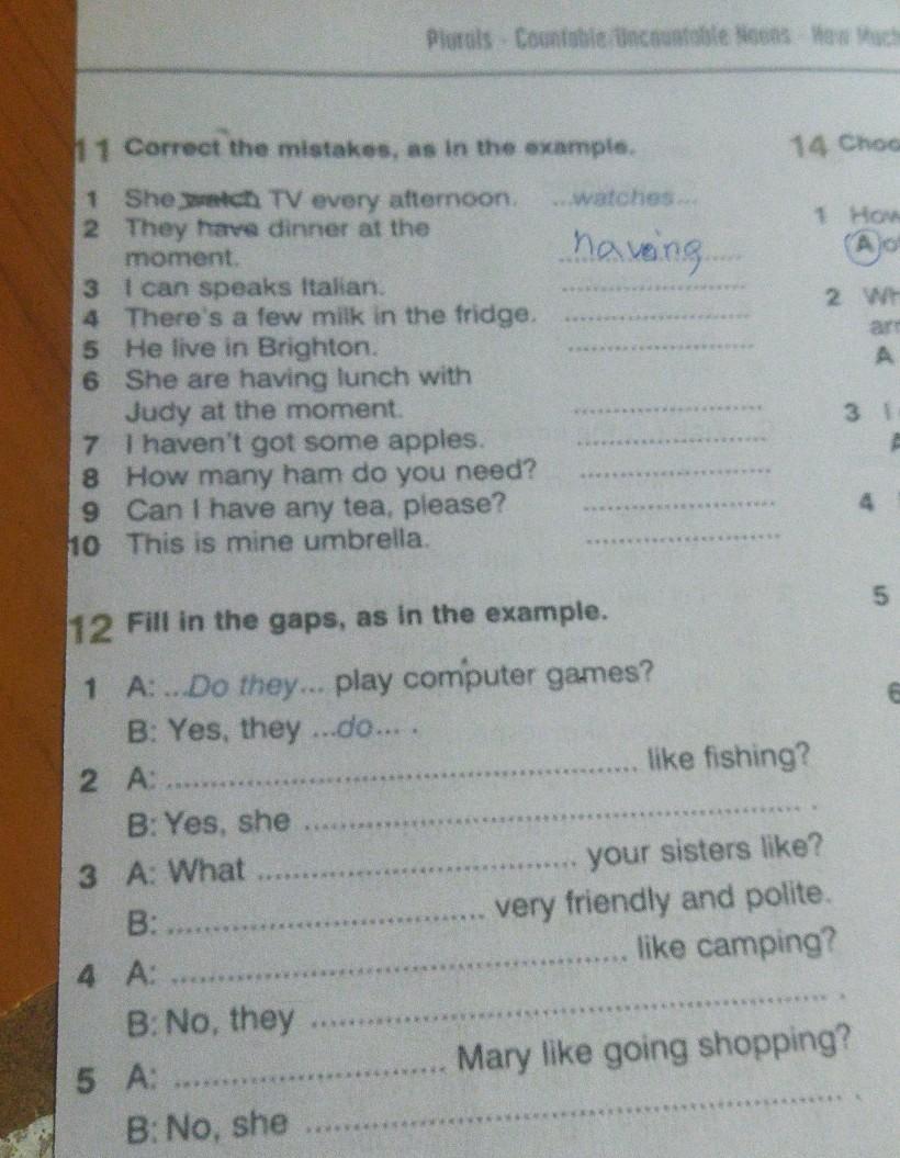 1) She watches TV every afternoon.