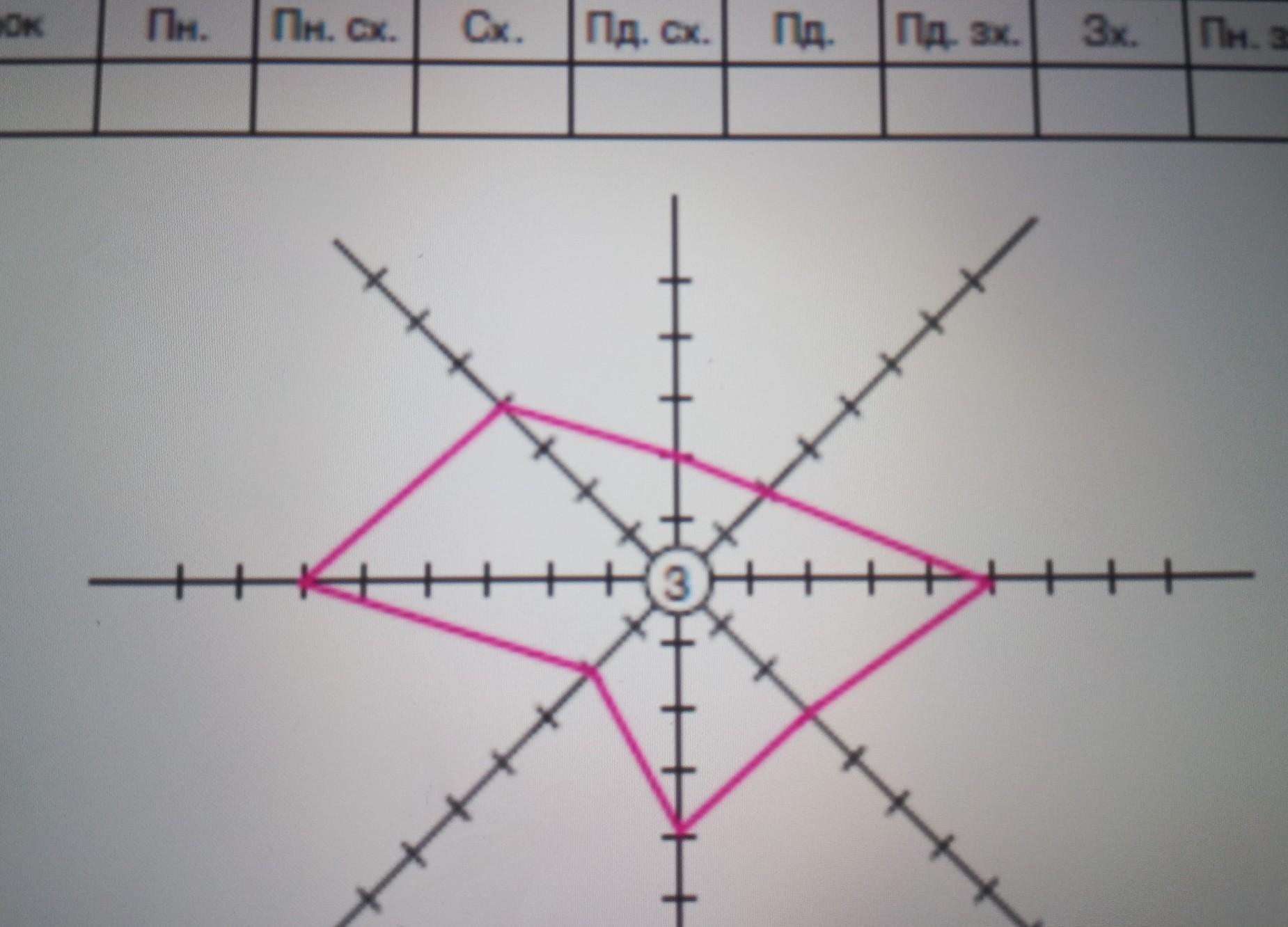північ(2), північний схід(2), схід(5) південий схід(3) південь(4)