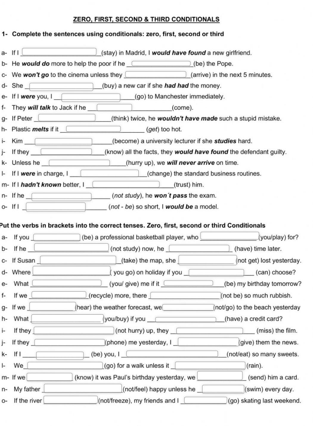 2-Put the verbs in brackets into the correct tenses. Zero, first, second or third Conditionals