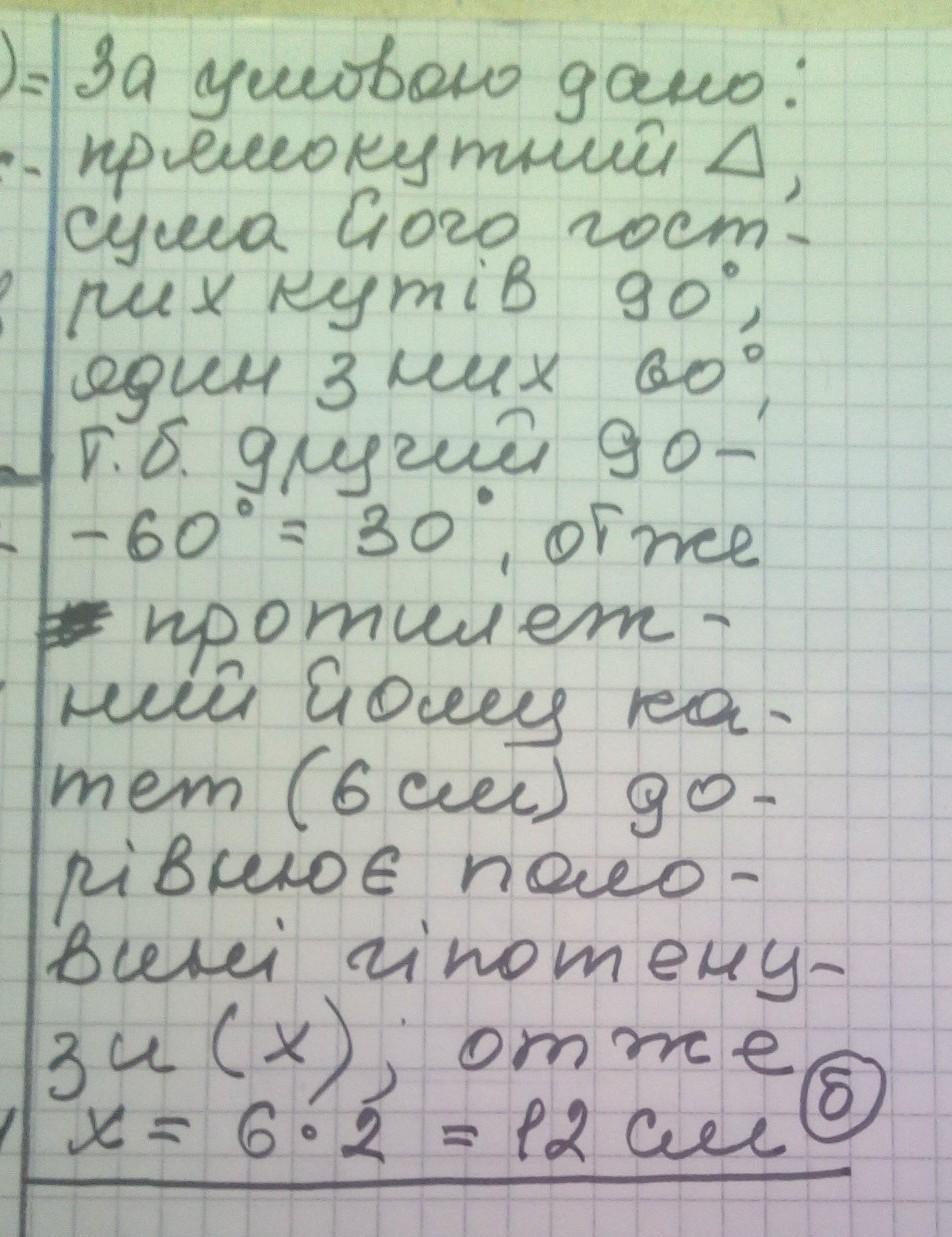 второй угол равен 30°, а катет лежащий напротив 30° в два паза меньше гипотинузы, следовательно гипотенуза в 2 раза больше