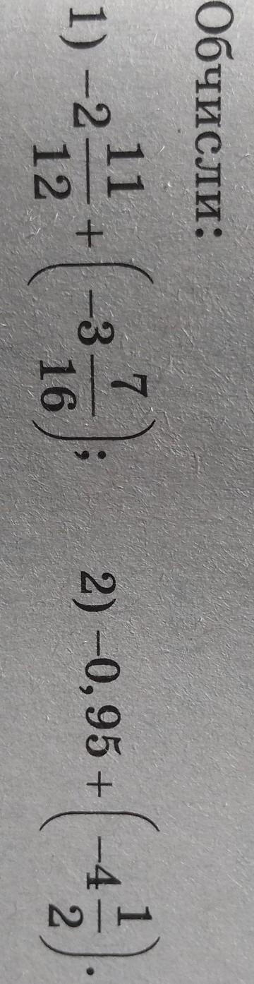 1. Обчисли: 7 16 11 1)-2 +-3- 12 2)-0,95 +(-4 1/2