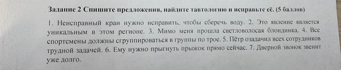 5) Пётр озадачил всех сотрудников трудной задачей. (Нет тавтологии)