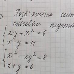 у=х-11 х(х-11)+х²=6 х²-11х+х²-6=0 2х²-11х-6=0 D=121+4×2×6=121+48=169 корень изD=13 x=(11+13)/4=6 x=(11-13)/4=-1/2
