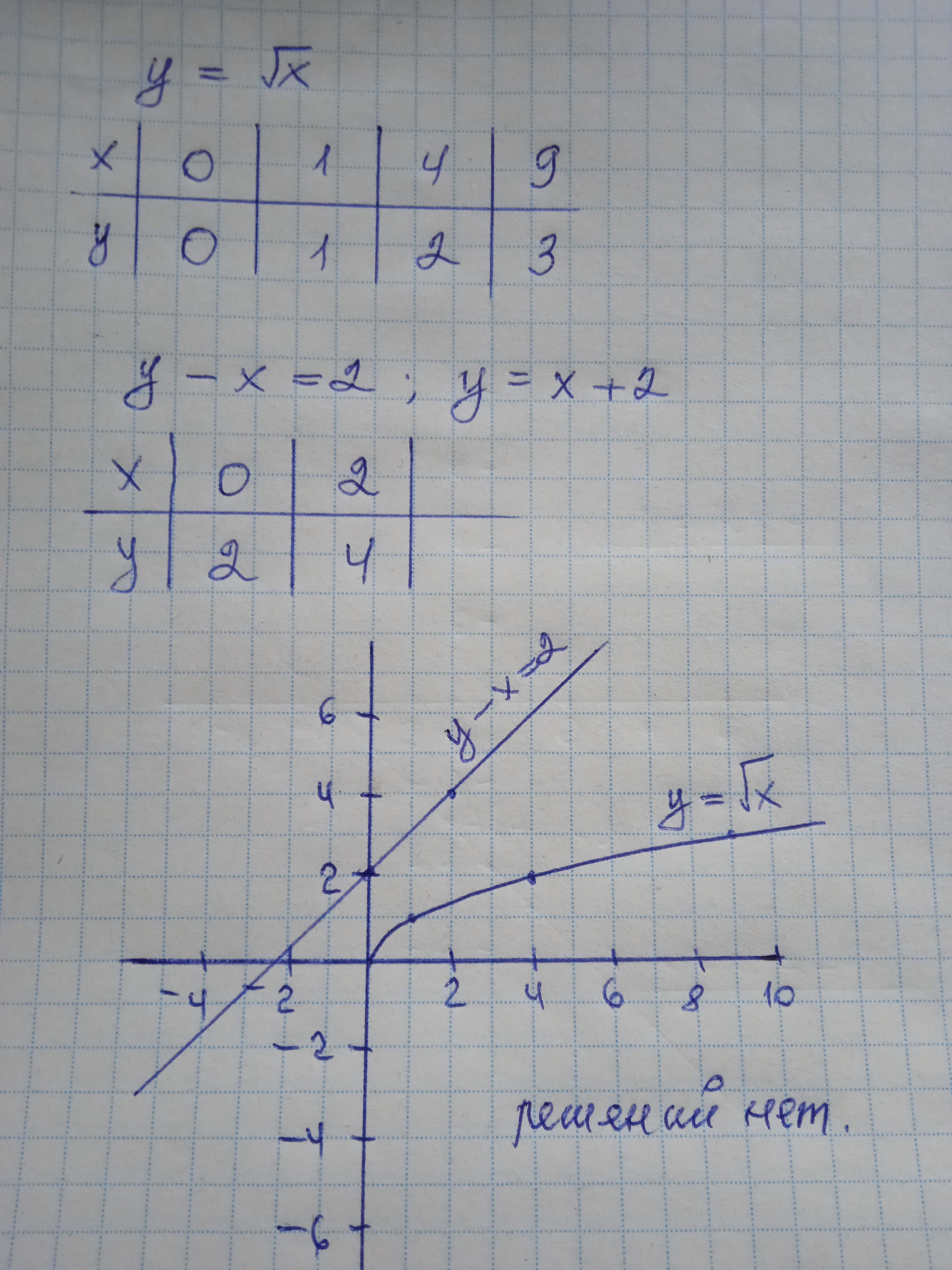 Графики заданный функций не пересекаются , поэтому общих точек у графиков нет , и значит система не имеет решений .