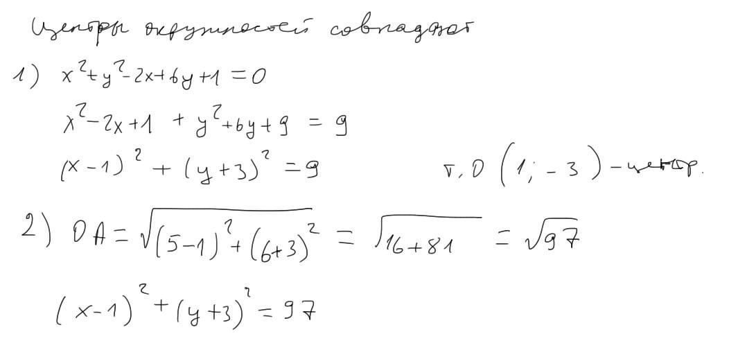 Складіть рівняння кола, яке проходить через точку A(5;6) і концентричне з колом х²+у²-2х+6у+1=0