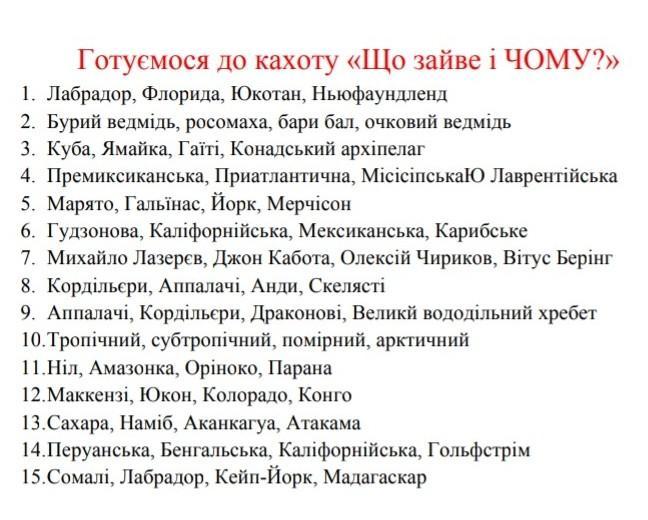 8. Анди зайві, бо гори у Південній Америці, усі інші гори у Північній Америці.