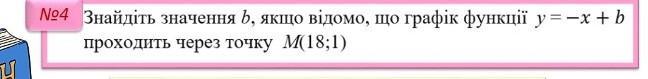 У нас є точка М(18;1), яка лежить на графіку функції у = -x + b. Це означає, що координати точки М задовольняють рівняння функції: