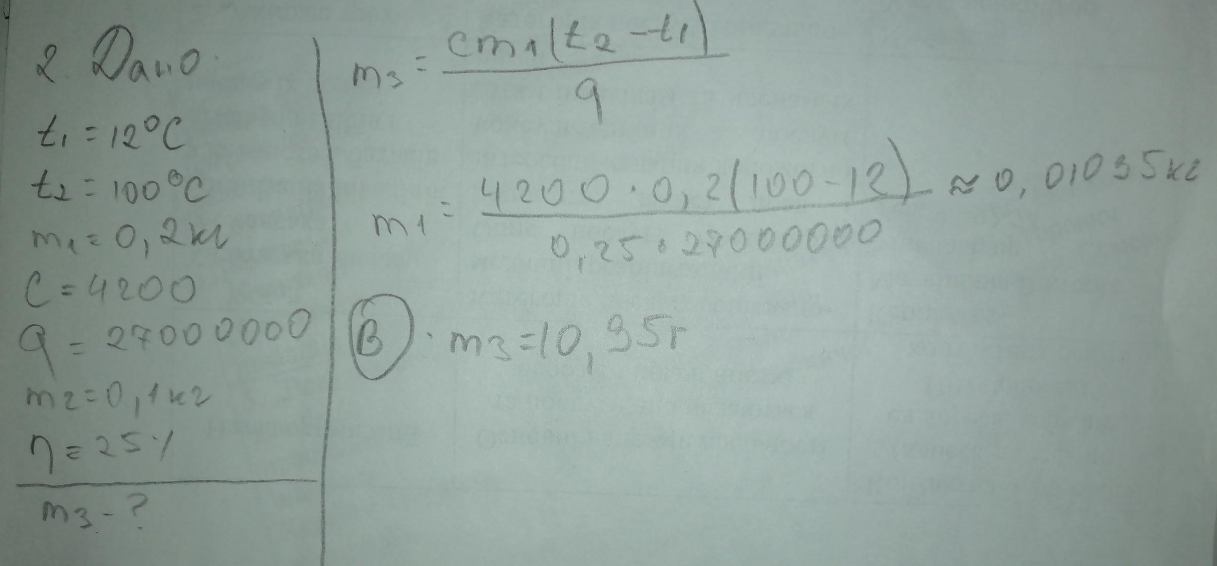 2.На спиртівку ставлять сталевий кухоль з водою при температурі 12°С. Який об’єм спирту потрібно спалити, щоб довести воду до кипіння? Маса кухля дорівнює 100 г, води – 200 г, ККД спиртівки становить 25%.
