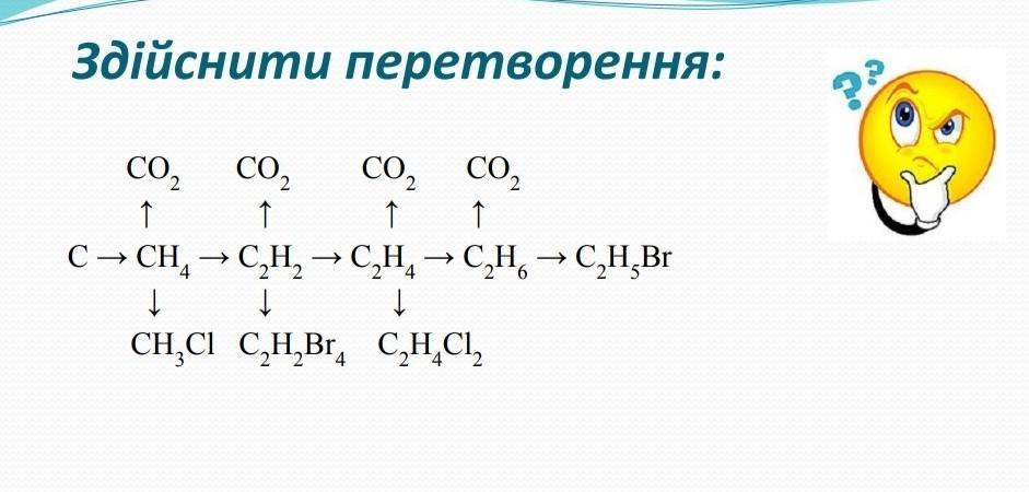3) CH₄ + Cl₂ → CH₃Cl + HCl ( над стрелочкой hν )