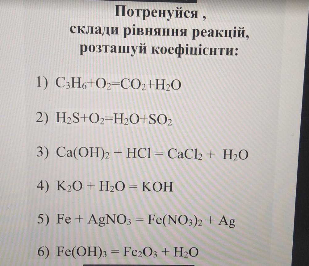 Потренуйтеся, складіть рівняння реакцій, розташуй коефіцієнти. Завдання у фото. 30 балов